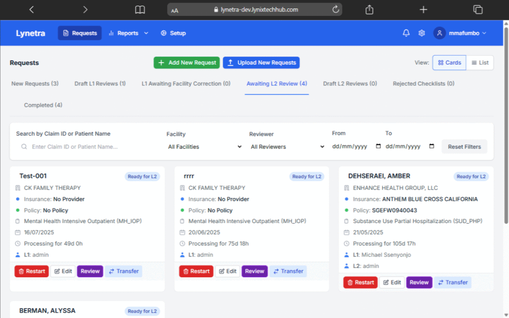 Level 1 Review is designed to identify and flag missing or non-compliant items within medical records for all levels of care, including Detox, RES, PHP, IOP, and OP.